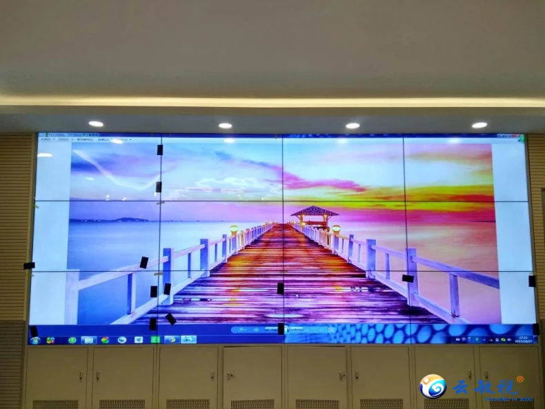 云敏视液晶拼接屏安装完毕,从图片上来看,效果还是可以的,后期我们售后服务跟上,想必客户会获得很好的视觉体验。感恩客户。