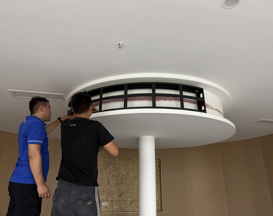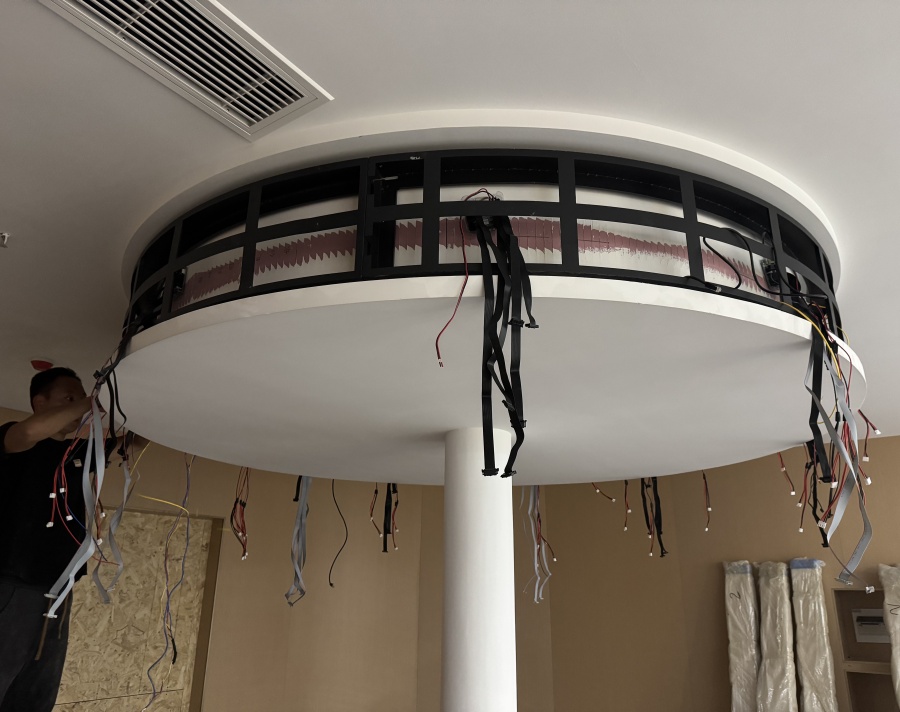 在安装项目中,我司团队全程提供了专业支持。考虑到环形结构的特殊性,前期与客户进行了深入沟通,详细了解其对屏幕尺寸、显示效果、安装位置等方面的要求。结合 P1.86 软模组的特性,制定了周密的安装方案,包括模组的拼接方式、固定方法以及线路的隐藏布置等,以确保屏幕整体的美观度和稳定性。